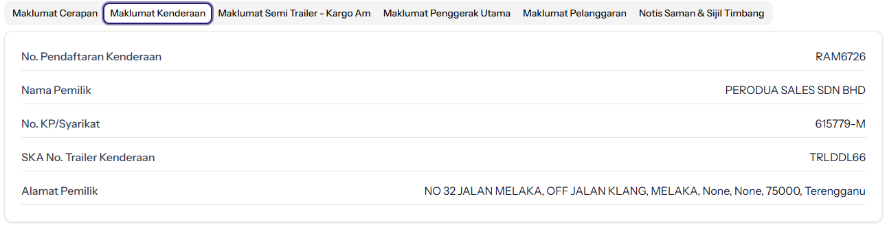"No KP Syarikat" ubah jadi "No ID Pemilik" atau "No Pengenalan Pemilik"