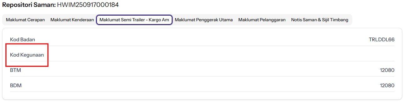 openKemas Kini Data Rujukan Kod Kegunaan dalam Repositori Saman