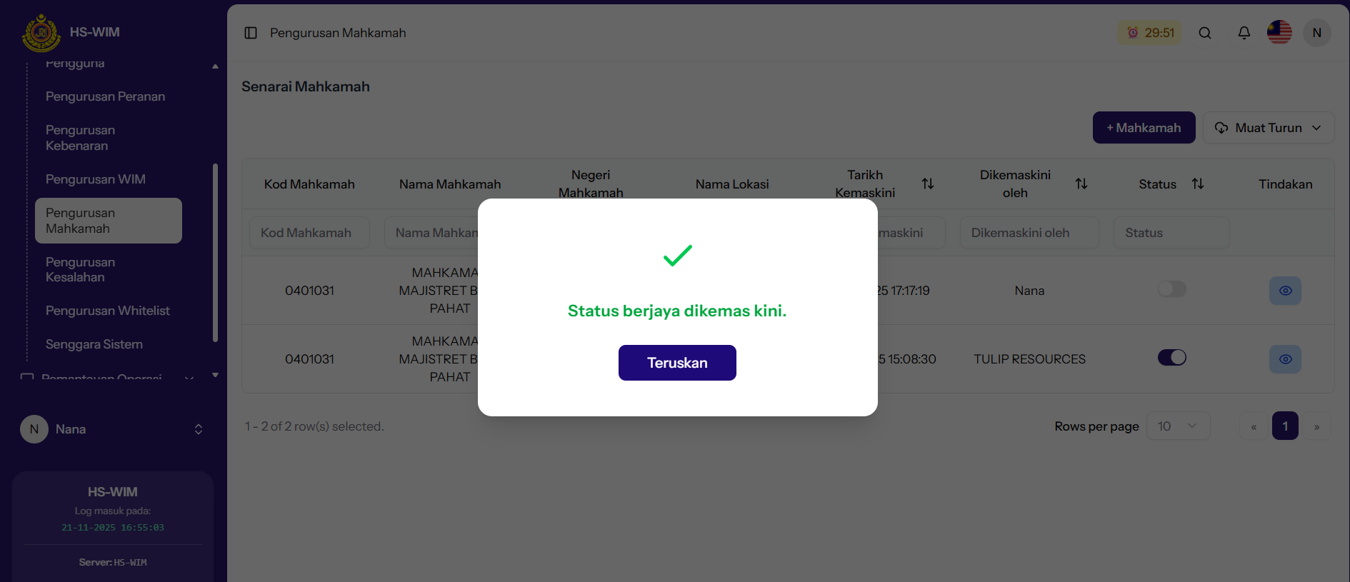 open(Pengurusan Mahkamah) 'Toggle' Status Tidak Berfungsi Walaupun Mempunyai Kebenaran