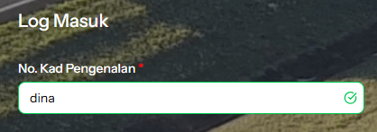 Apabila user spam klik pada text box ID, lambang pengesahan ID yang salah akan berubah dari simbol pangkah (X) ke tick (/).