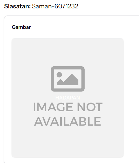 Didapati tiada gambar kenderaan dalam Repositori Saman sejak 1 Julai hingga ke hari ini