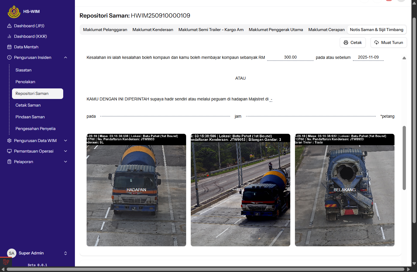 Tiada nama mahkamah yang dipaparkan dalam penjanaan saman. Sistem perlu memaparkan nama mahkamah yang berkaitan supaya saman yang dijana lengkap dan memenuhi keperluan perundangan.